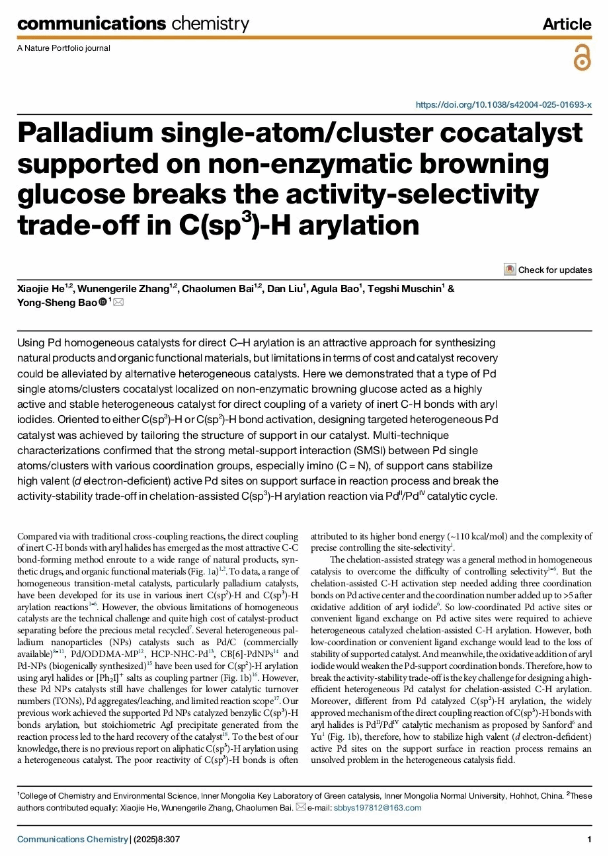 包永胜教授团队在Nature旗下Communications Chemistry发表论文