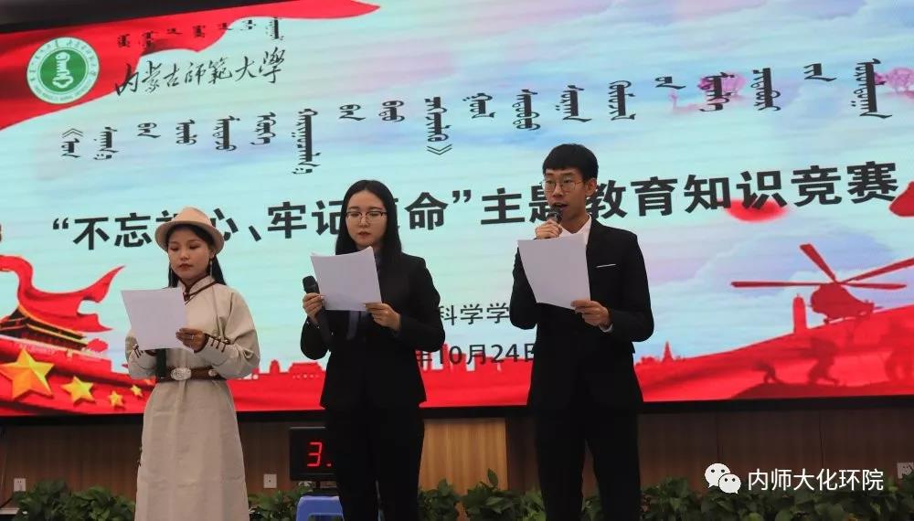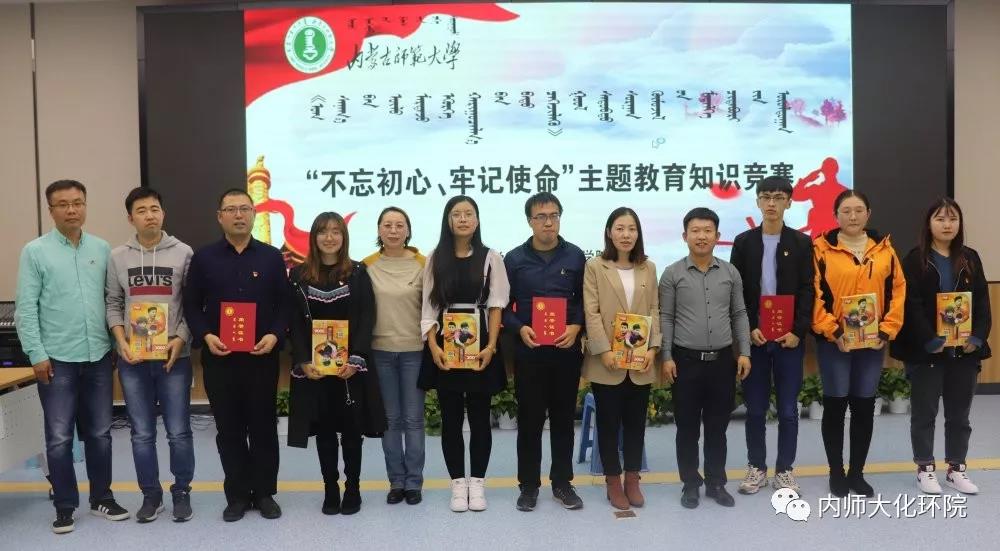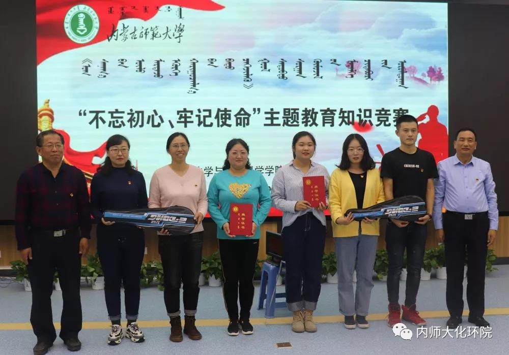 为切实推进“不忘初心、牢记使命”主题教育取得实效,进一步学习贯彻党的十九大精神和习近平新时代中国特色社会主义思想,不断提高党员的理论素养,10月24日下午,yL23411永利集团党委在盛乐校区学生事务中心举办了 “不忘初心 牢记使命”主题教育知识竞赛,来自绿色催化党支部、无机材料党支部、环境化学党支部、本科生党支部、研究生党支部共计5个党支部代表队参加比赛,学校“不忘初心 牢记使命”主题教育第一指导组副组长乾达门同志莅临本次活动,学院各党支部全体党员以及学生党支部部分积极分子近130人参加本次活动。