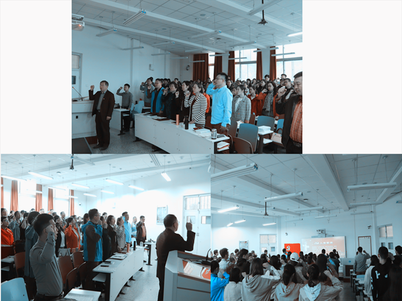 会议首先党委书记刘子忠同志领着全体党员同志进行重温入党誓词。
