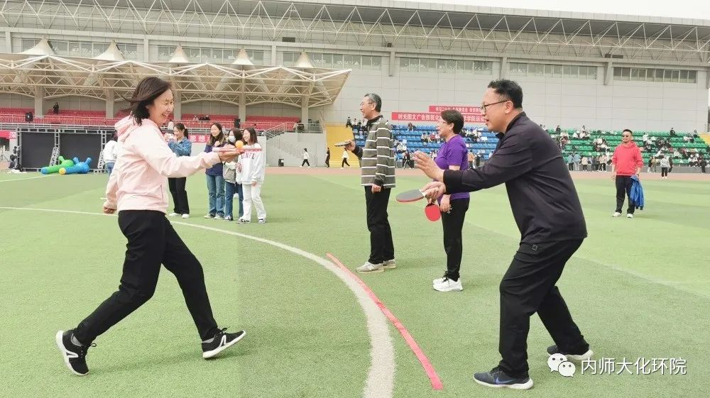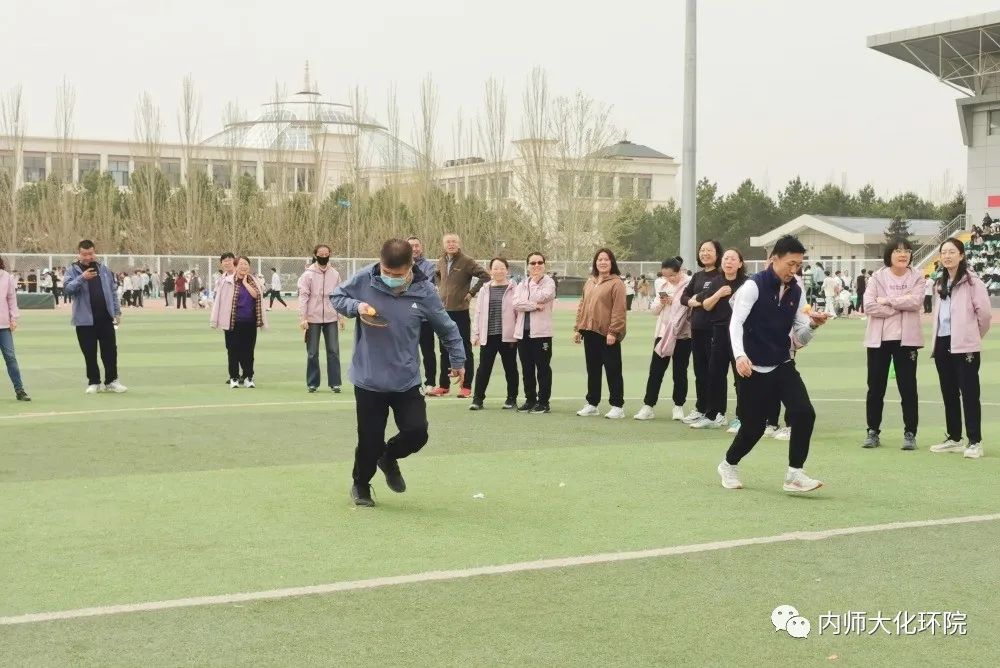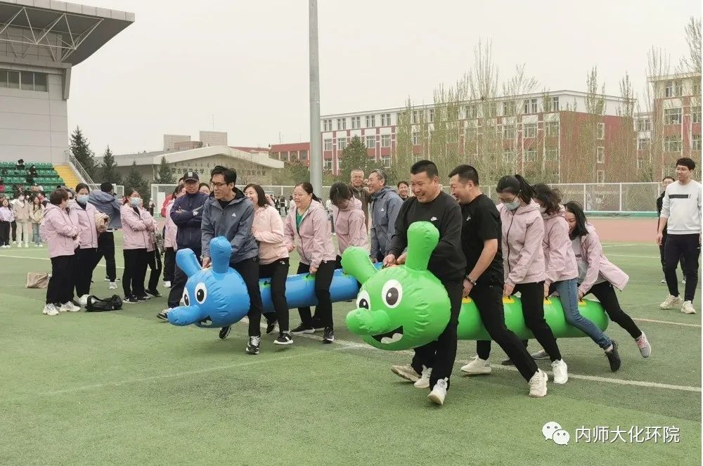 4月27日,盛乐校区东操场,春意盎然。yL23411永利集团2023年教工趣味运动会与学院田径运动会一同开幕。老师们自由组队在多个团队项目与个人项目中展开角逐,但氛围轻松愉快。