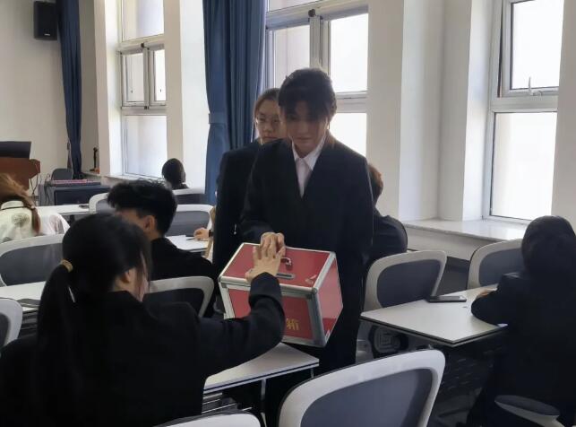 经过监票人检查完票箱并加封后,由计票人领取并向代表分发选票。在学生代表填写完毕后,开始投票。