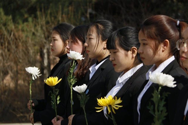 在庄严肃穆的烈士纪念碑前,化环院师生扫墓祭奠活动如期进行。第一项师生集体奏唱国歌。曲毕,在场师生有序上前,带着崇高的敬意为革命先烈献上鲜花,以示哀思。之后参加本次活动的学生代表集体默哀三分钟,以表达对先烈的悼念。后何朝鲁门老师发表了讲话,呼吁各班学生要适应时代发展的要求,高举爱国主义旗帜,努力学习,沿着先辈的足迹,继承先烈遗志,真正把爱国之志变成报国之行。继而学生代表发言:作为学生,要时刻牢记自己是革命事业的接班人,一刻也不要忘记时代赋予自己的使命和责任。然后由主持人带领师生一同重温入团誓词,伴随着激扬澎湃的乐声,学生代表们一起奏唱团歌,共同回忆了当初加入共青团时的赤子之心。祭奠仪式结束后,全体师生在纪念碑前合影留念,为本次活动画上了圆满的句号。