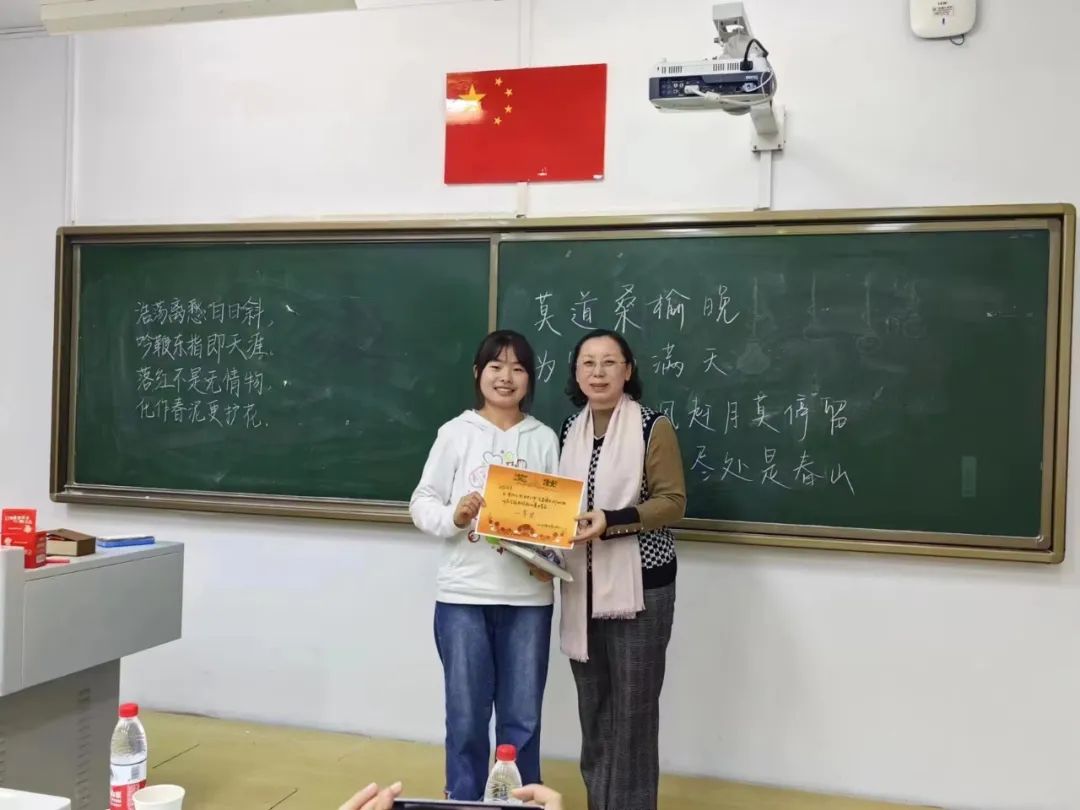 选手展示完毕后,由张紫鸣同学和王晓辉同学借诗句表达对老师的感激和对同学们的祝福。