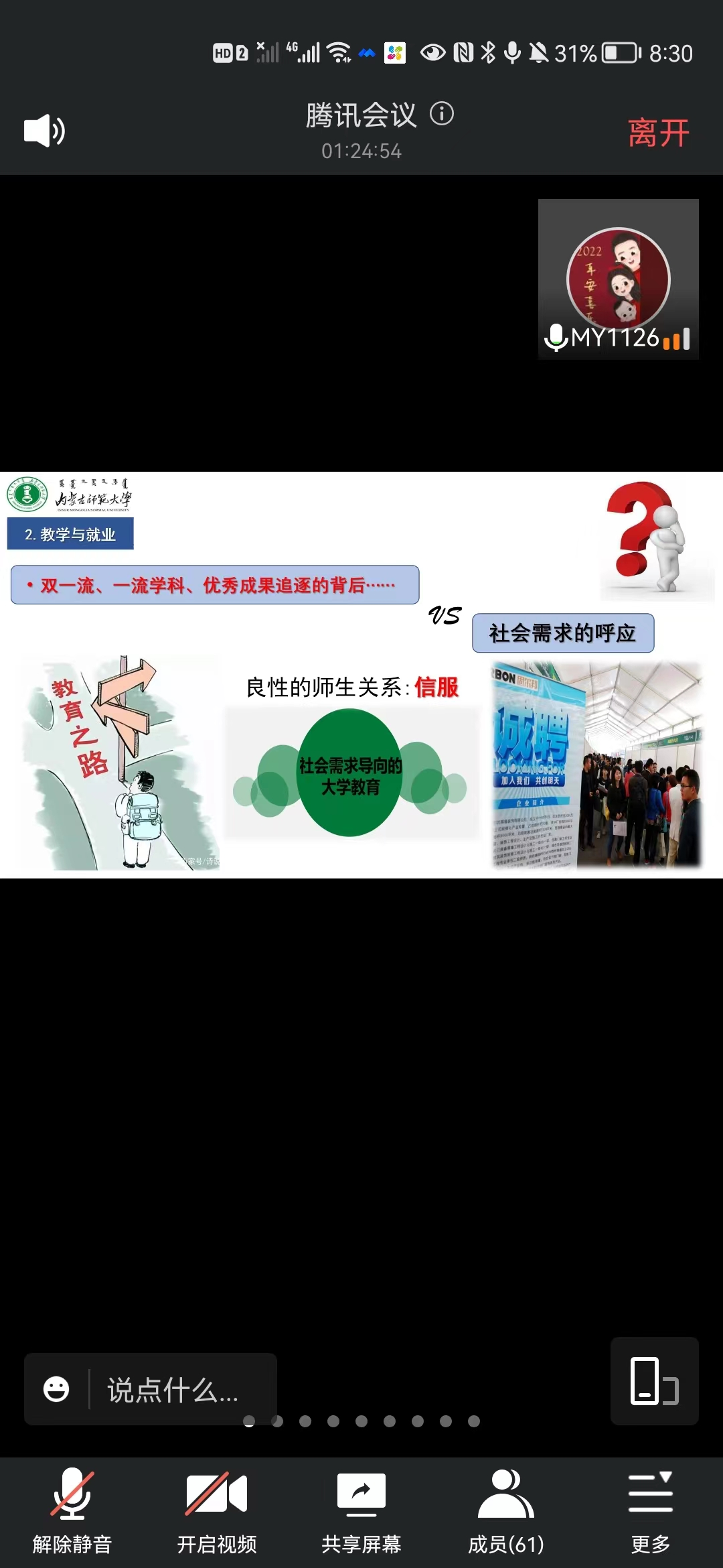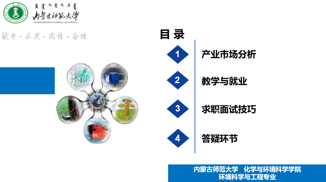 2022年5月24日,晚7:00-9:00,化学与环境学院环境科学系主办了一次题目为《如何在当下的市场环境中更好地进行职业规划——环保市场分析》的线上就业指导活动,其目的在于为毕业季的2018级环境科学专业学生就业进行全方位指导,提高我院环境科学专业的就业水平和质量,以此激励同学们向更为广阔的环保市场挺进。