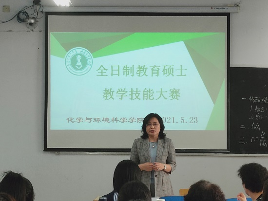 2021年5月22日举办了2020级全日制教育硕士教学技能大赛初赛,共有38位研究生参加。比赛由15分钟的模拟授课和5分钟的即兴演讲构成,分两组进行。第一组在化学楼315进行,由刘子忠书记担任组长,莎仁、陈丽萍、赵斯琴、白音孟和4位研究生导师担任评委;第二组在化学楼102进行,由乌云教授担任组长,吴哈申、王晓丽、爱军、李玉珍4位研究生导师担任评委。比赛过程严格按照校级赛的规格,参赛选手在比赛前1小时抽取模拟授课题目,模拟授课结束后现场抽取即兴演讲题目。评委现场打分,最后成绩为5 位评委所给成绩去掉最高分和最低分之后的平均分。通过一天的激烈角逐,最终选取每组前3名晋级决赛。初赛结束后,每位评委都进行了精彩点评,为各位参赛选手指明了问题,提出了建议,并寄予了希望。