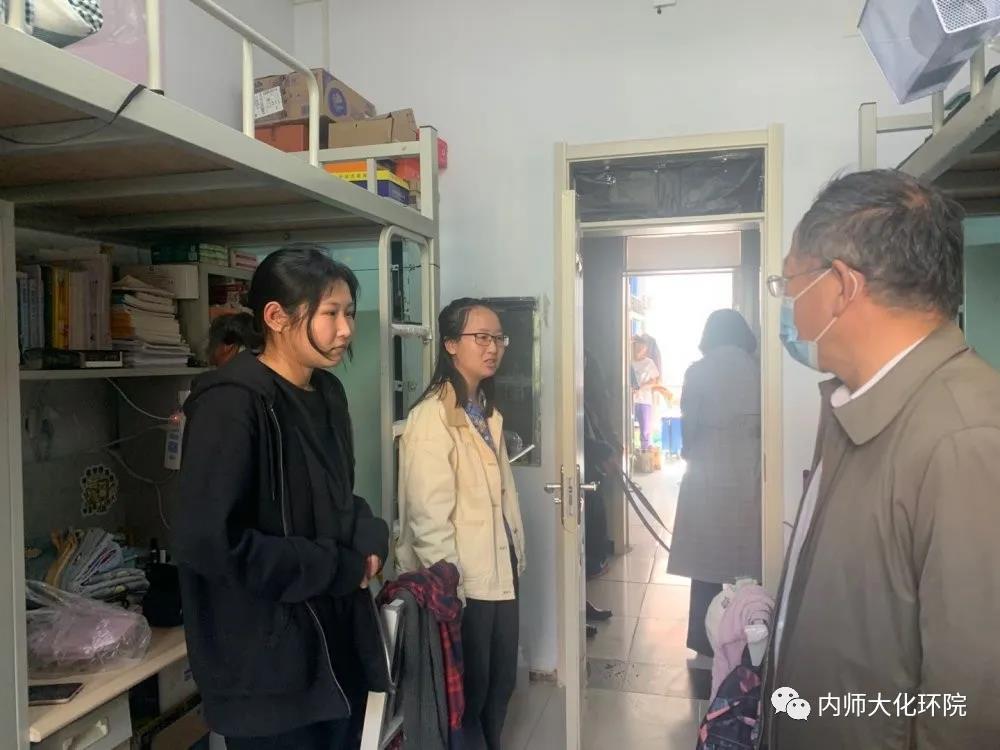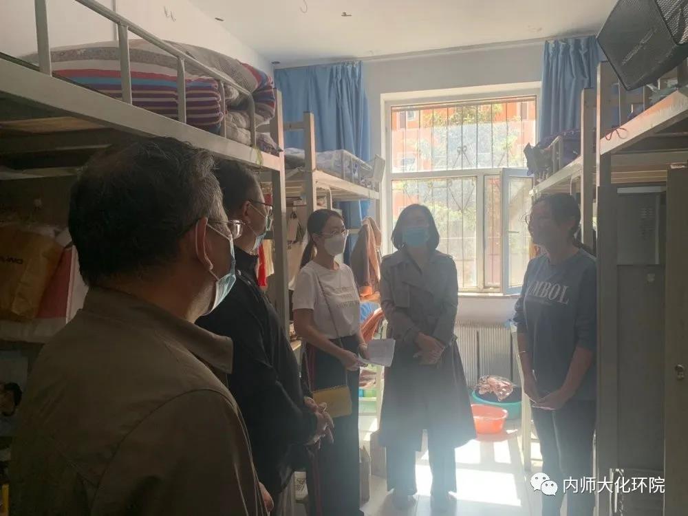 学院党委书记刘子忠,院长贾美林,院党委副书记、副院长胡日查 ,副院长包永胜一行来到赛罕校区研究生学生宿舍,查看同学们的准备情况,与同学们进行亲切交谈,提醒同学们注意身心健康,加强锻炼,提高安全防范意识,严格遵守学校、学院疫情防控的各项规定,安心在校完成学习任务。
