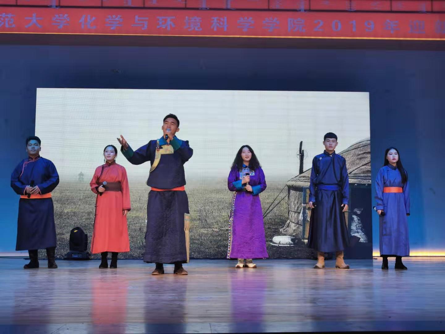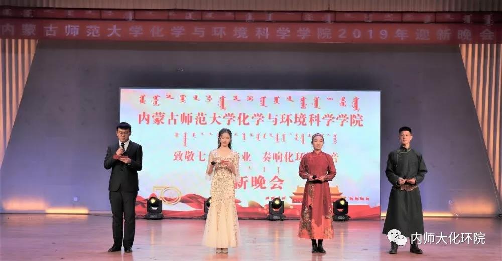 “致敬七十载伟业 ,奏响化环院华音”。为礼赞祖国70华诞,同时迎接我院2019级新生的到来,2019年11月23日我院在盛乐校区音乐厅隆重举行2019年迎新晚会。yL23411永利集团院长贾美林教授,学生工作处副处长宝贵老师,学院党委副书记兼副院长胡日查老师,副院长包永胜教授,党委委员、工会主席王奖老师,党委委员爱军教授,党委委员赵斯琴教授,环境科学系主任代钢老师,实验中心主任满都拉老师,研究生教学秘书张阳老师,物理与电子信息学院辅导员宋鑫伟老师,团总支负责人王淑娟老师,学工办负责人白赛纳老师、各班班主任、任课教师以及兄弟院系学生会主席出席了本次迎新晚会。