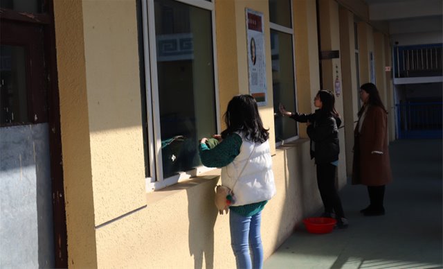胡书记和何老师带领志愿者们到达指定的教室开始做黑板报、扫地、擦玻璃等一系列劳动。大家在打扫的过程中和小朋友们自由交流气氛融洽。人多力量大,大家快速的完成了打扫任务,然后开始在教室里和小朋友们一起做游戏、唱歌,阵阵笑声和着朗朗的歌声从教室里传来。