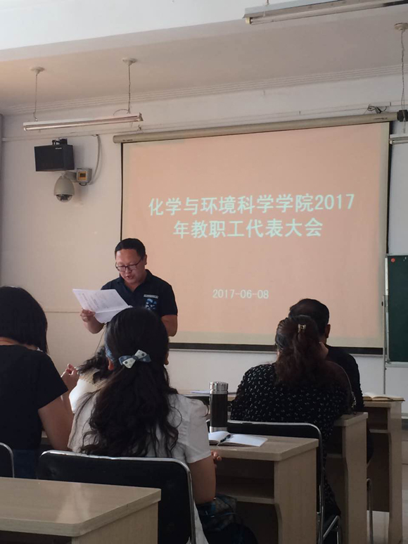2017年6月8日下午4:00,yL23411永利集团在文史楼第四公共教室隆重举行2017年全体教职工代表大会。