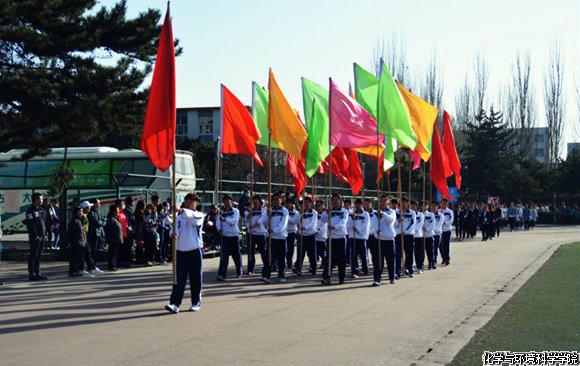 英姿飒爽的国旗护卫队,踏着铿锵有力的步伐,行进在队伍的前列……旗手护卫院旗,庄严肃穆,气宇轩昂……彩旗队员,手擎彩旗,迎风招展,无比鲜艳……裁判员列队整齐,神采飞扬……各班级代表队精神抖擞,意气风发……可爱的卡通人物方队萌翻全场……“民国风”运动方队汇成一片蓝色的海洋……大苯环造型的运动方队彰显学术氛围……各个代表队风格迥异的展演让人耳目一新,赢得观众声声喝彩。