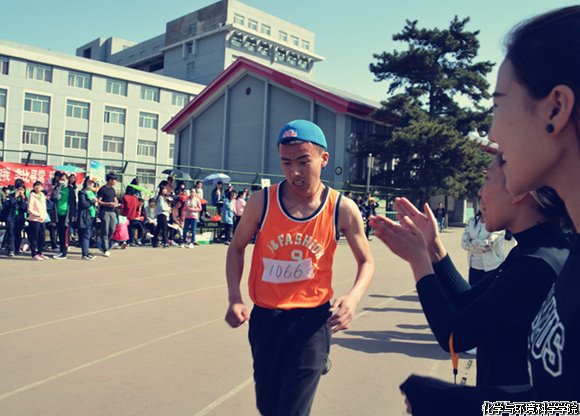 接力比赛场上,小小的接力棒承载着所有运动员紧张的情绪和夺冠的强烈欲望,场外同学看着越来越近的接力棒,努力为队员呐喊助威。在4*100接力中,选手们表现出极大的默契和努力。2014级化学汉班只有四个男生,全都参加了比赛。这种积极进取,永不言败的精神让人敬佩。最值得一提的是我院2012级环境一班的王茂同学及他的团队取得了“三连冠”的好成绩。