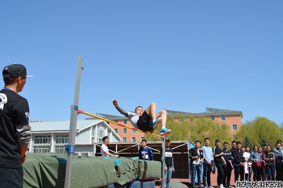 4月13日,我院在西操场举行了跳高、铅球、标枪的比赛。各位运动员奋力拼搏,一比高下。在跳高的比赛中,2015级化蒙和2015级环蒙的选手表现尤为突出,两个男生争夺冠军,并尝试打破原有记录。虽然他们没有刷新纪录,但他们的精神可佳,值得表扬。在跳高和标枪的比赛中,我院2014级周娜同学打破了历史记录,创了我院该项运动成绩的新高度。