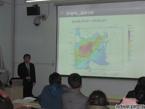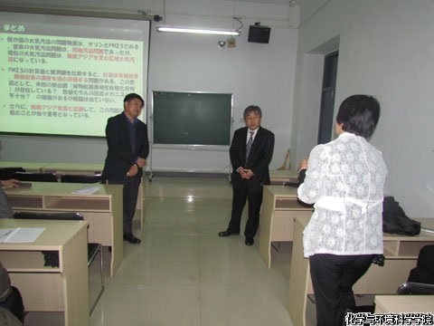 近藤 明教授介绍了其课题组近年来的一些科研进展,主要讲述了细颗粒物PM2.5研究。内容包括PM2.5的概念、产生的根源和在亚洲地区各大城市的PM2.5污染等方面做了详细分析和讲解。报告会后,近藤 明教授与在场的老师和同学进行了学术讨论。