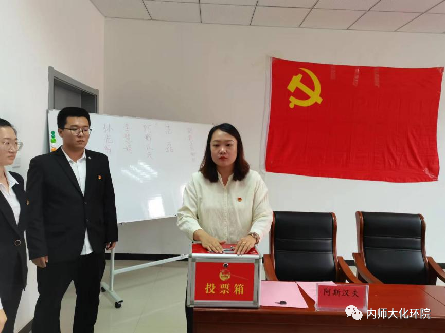 根据《中国共产党章程》规定,大会以无记名投票、差额选举的方式选举产生了新一届支部委员会。新一届支部委员会召开第一次会议选举范磊同志任党支部书记,阿斯汉夫同志任党支部副书记,孙光明同志任纪检委员,李慧娟同志任组织委员,冯卓静同志任宣传委员。