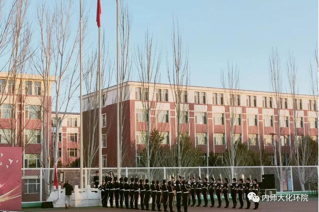 8时整,升旗仪式正式开始。英姿飒爽的国旗班同学昂首阔步,以饱满的姿态、整齐的步伐走向升旗台,全体师生庄严肃立,怀着对祖国的无限热爱和崇高敬意,向国旗行注目礼。迎着初阳,五星红旗高高飘扬,雄壮国歌昂扬唱响。