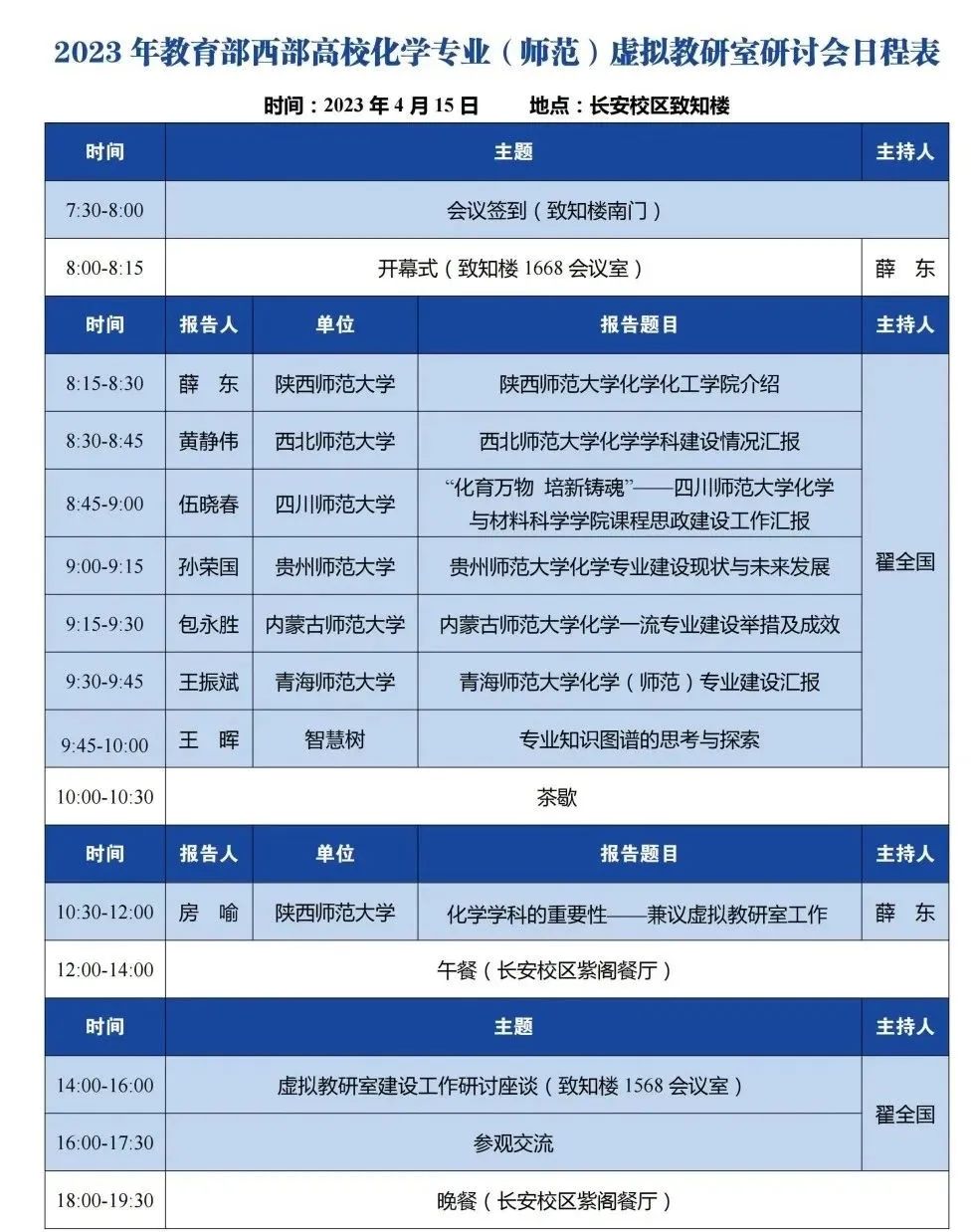会议就目前专业建设、学生培养、教师激励、科研发展和虚拟教研室建设等方面进行了深入座谈交流,并讨论通过了教育部“西部高校化学专业(师范)虚拟教研室”章程(草案)。