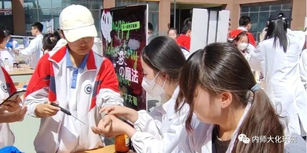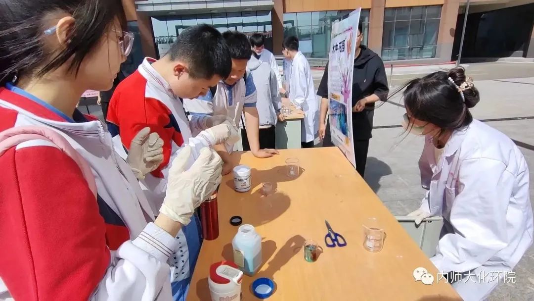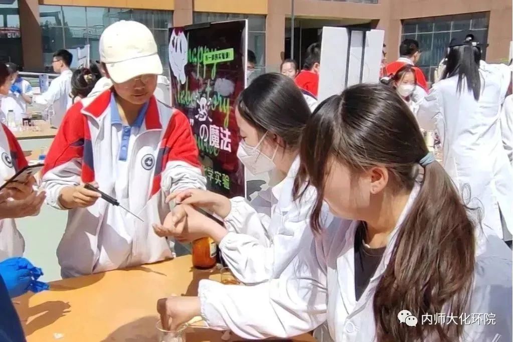 活动一:yL23411永利集团2021级60名本科生组成20个科普实验小组,为中学生提供化学科普服务。通过观察、讲解、体验、探究等多种方式,带领大家走进科学,去体验丰富多彩的互动实验,感受科学的氛围。