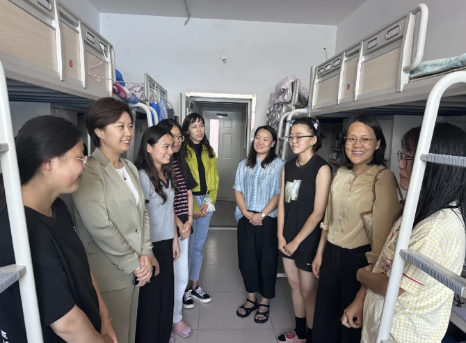 新学期伊始,为落实新学期学生安全返校工作,掌握学生思想动态,进一步做好学生的教育、管理与服务工作,8月26日,学院党委书记林海河,党委副书记、副院长范磊,副院长包永胜、焦燕以及全体辅导员深入学生宿舍,为学生送去关心与问候。