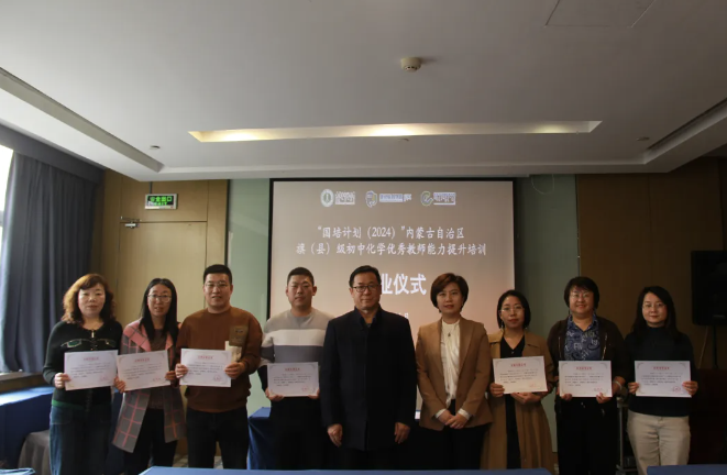 11月22日下午,为期两周的“国培计划(2024)”——内蒙古自治区旗(县)级初中化学优秀教师能力提升培训项目圆满落幕。院党委书记林海河,党委副书记、副院长、项目班主任范磊参加结业仪式。