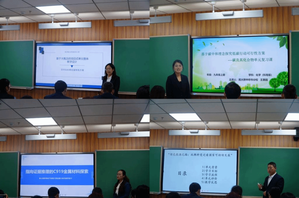 首先由张丽霞、王惠园、李丽娜、杨智慧四位教师带来了单元优质课例示范展示,四位教师以深厚的专业素养及对单元教学的独到理解,为我们呈现了系统、完备、结构化的单元教学设计,使学生们受到了很多启发。