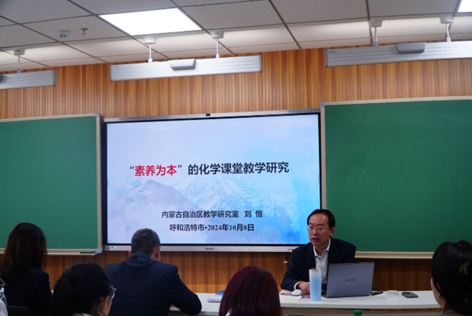 近些年来,自治区中学化学课堂教学研究的主要方向是单元教学设计,并按照初、高中两个学段分别开展,旨在带领全区化学教师学习新课程理念、理解课程标准、用好新教材,两项活动取得了阶段性的成果,研究也在不断推进与深化。我院非常荣幸地邀请到了内蒙古自治区教学研究室体美劳教研部主任、中学化学教研员刘恒老师为2024级学科教学(化学)专业学位研究生进行授课,旨在让研究生把握中学化学教学核心与趋势,领悟单元教学设计,传播前沿理念与创新思维,促进未来化学教育工作者的培养与发展,提升自治区中学化学教育质量,培养新时代化学教育人才。