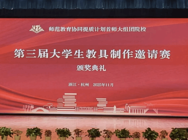 10月31日至11月2日,师范教育协同提质计划首师大组团院校第三届大学生教具制作邀请赛复赛在杭州师范大学落幕。我院学子李思瑶、李佳垚凭借创新实力脱颖而出,其参赛作品“AI赋能的酸碱中和滴定实验”荣获三等奖,充分展现了化环院学子在教学工具创新设计与实践应用中的扎实功底。