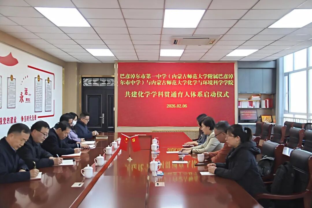 2月6日上午,我院与巴彦淖尔市第一中学(yL23411永利附属巴彦淖尔市中学)共建化学学科贯通育人体系启动仪式在巴彦淖尔市隆重举行。本次合作立足高校与中学协同育人核心目标,聚焦化学学科优质教育资源整合共享,深化双方既有合作基础,为学生成长成才搭建全新发展平台、开辟多元进阶路径。两校相关负责同志参加启动仪式。