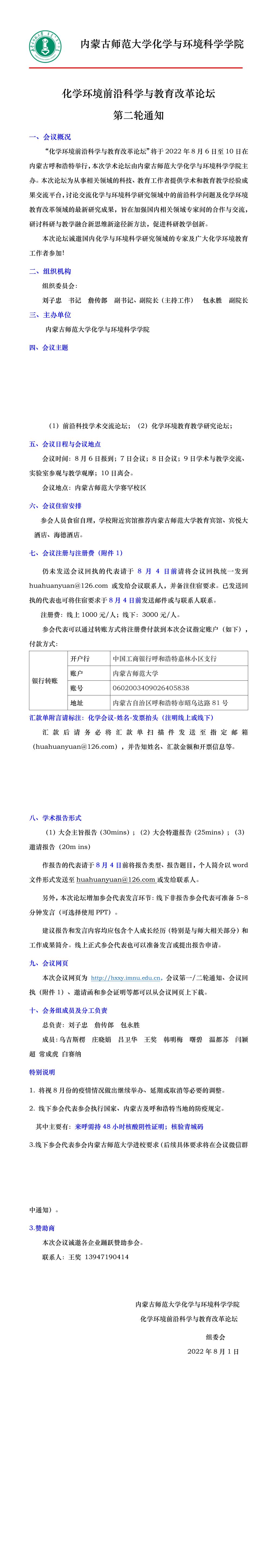 yL23411永利集团化学环境前沿科学与教育改革论坛第二轮通知