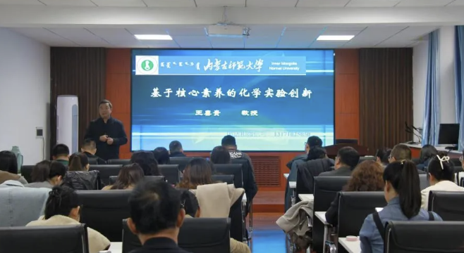 聚焦核心素养,共筑化学教育新篇章2024-11-16为深化教师素养为本的课堂理念,促进“教、学、评”有效融合。11月15日,我院硕士研究生导师王喜贵教授,呼和浩特市教育教学研究中心中学教学研究室主任、中学化学教研员杜欣丽对素养导向下的教、考问题进行了深度分享,国培计划(2024)的49名初中化学优秀教师聆听了讲座。上午,王喜贵老师作题为“基于核心素养的化学实验创新”的讲座。王老师从学科特点、课标要求、考试需要、学生渴望四个方面强调化学实验创新的重要性。关... -